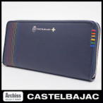 カステルバジャック CASTELBAJAC 長財布 ラウンドジップ メンズ ネイビー 型押し 6カラー飾り ステッチ シェスト 訳あり CA1085-kn S56869