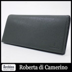 ロベルタRoberta di Camerino 濃いグリーンやや光沢シュリンクレザーロゴ刻印入りドット2長財布 メンズ RBK615-50 S52273
