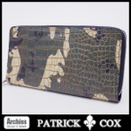 パトリックコックス PATRICK COX 長財布 メンズ ラウンドジップ カーキ系 迷彩クロコ型押し 訳あり S55939