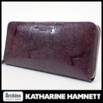 キャサリンハムネット KATHARINE HAMNETT 長財布 メンズ ワインレッド ペイズリー型押し ラウンドジップ KH1585-r 訳あり S56806