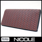 ニコル monsieur NICOLE 赤茶編み柄の型押しレザー長財布 メンズ 紳士 S42568