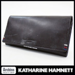 キャサリンハムネット KATHARINE HAMNETT 焦茶3ステッチコンチネンタルブライドルレザー長財布 訳あり メンズ S23405