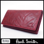 ポールスミス Paul Smith 赤にエメラルドグリーンステッチシワ加工長財布 メンズ PSU585-20 S52214