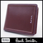 ポールスミス Paul Smith バーガンディーに濃いオレンジカラーブライトゴートレザー2折財布 二つ折り 二つ折財布 メンズ PSU850-80 S54174