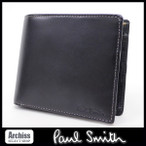 ポールスミス Paul Smith 2折財布 二つ折り 二つ折財布 メンズ 黒 マルチストライプ付き ハンドステインカーフ S56103