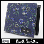 ポールスミス Paul Smith 2折財布 二つ折り 二つ折財布 メンズ ネイビー ローガンフローラルシリーズ 訳あり S56109