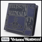 ヴィヴィアンウエストウッドVivienne Westwood 2折財布 メンズ ネイビー グレー TAGS タイルプリント柄 PVCコーティング VWK083-30 S56677