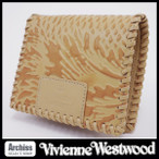 ヴィヴィアンウエストウッドVivienne Westwood 2折財布 メンズ ベージュ ナチュラル ポメグラネート エンボス加工 サイド編みデザイン VWK030-90 S56685