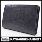 キャサリンハムネット KATHARINE HAMNETT 2折財布 二つ折り財布 二つ折財布 メンズ 黒 ブラック ペイズリー型押し L字ジップ KH1583-b 訳あり S56834