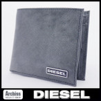 ディーゼルDIESEL 2折財布 二つ折り財布 二つ折財布 メンズ グレー系 ムラ加工 型押し レザー ロゴプレート付き X03130-T8085 S57012