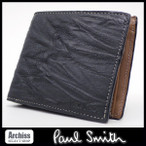 ポールスミス Paul Smith 黒シワ加工内側ブラウン羊革使用2折財布 二つ折り 二つ折財布 メンズ 紳士 PSU394-10 S50299