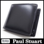 ポールスチュアート Paul Stuart 黒やや光沢レザーシンプルデザイン高級2折財布 二つ折り 二つ折財布 メンズ S50447