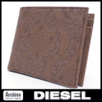 ディーゼルDIESEL ブラウンにカービング彫り模様アラベスク柄2折財布 二つ折り 二つ折財布 メンズ S52117