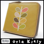 オーラカイリー Orla Kiely イエローエンボスプリントマルチカラーハッチステムラウンドジップ2折財布 訳あり レディース S33912