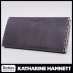 キャサリンハムネット KATHARINE HAMNETT 黒3ステッチコンチネンタルブライドルレザー長財布 訳あり メンズ S52603