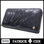 パトリックコックス PATRICK COX 黒イタリアンレザーシワ加工ゴールドユリ紋章付きラウンドジップ長財布 訳あり メンズ S48648