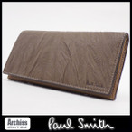 ポールスミス Paul Smith モカブラウンシワ加工内側ブラウン羊革使用長財布 メンズ 紳士 PSU396-70 S49055-56