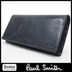 ポールスミス Paul Smith ブルーブラックニューヘビークリーシー長財布 メンズ PSU465-30 S50852
