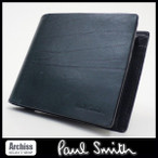 ポールスミス Paul Smith 黒ニューヘビークリーシー2折財布 二つ折り 二つ折財布 PSU464-10 メンズ S50867