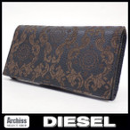 ディーゼルDIESEL 黒に茶カービング彫り模様アラベスク柄長財布 メンズ S52102