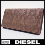 ディーゼルDIESEL ブラウンにカービング彫り模様アラベスク柄長財布 メンズ S52107