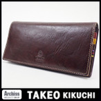 タケオキクチTAKEO KIKUCHI ブラウン内側マルチカラーレザー長財布 訳あり メンズ S52666