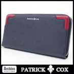 パトリックコックス PATRICK COX ネイビー型押しレザーに赤コーナーフレームラウンドジップ長財布 訳あり メンズ S52822