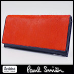 ポールスミス Paul Smith 長財布 メンズ 赤系 オレンジ ネイビー ハラコ PSU982-42 S55839