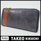 タケオキクチTAKEO KIKUCHI 長財布 メンズ グレーネイビー 赤系 ストライプ柄 フェイス L字ジップ TK0148 訳あり S56845-46