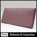 ロベルタRoberta di Camerino ブラウンレザーRロゴ型押し長財布 訳あり メンズ S40757