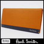 ポールスミス Paul Smith オレンジにネイビーカラーブライトゴートレザー長財布 メンズ PSU851-42 S55544-45