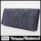 ヴィヴィアンウエストウッドVivienne Westwood 長財布 メンズ ネイビー グレー TAGS タイルプリント柄 PVCコーティング VWK086-30 S56659