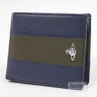 牛革 二つ折り財布 ヴィヴィアンウエストウッド 2折財布 二つ折財布 ネイビー 濃い カーキ ライン 立体 オーブ付き チェスター シリーズ メンズ 紳士 メンズ財布