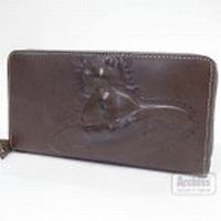 お洒落 長財布 ヴィヴィアンウエストウッド ラウンドジップ ラウンドファスナー 焦茶 ブラウン チョコ 3D 立体 オーブ デザイン メンズ 紳士 メンズ財布